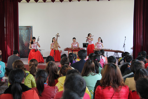 随着一曲女声独唱《亲爱的人》,拉开了音乐会演出的序幕。武汉音乐学院24名师生带来的二胡、琵琶、古筝、笛子演奏和男女声美声、通俗歌曲表演等节目一一呈现在大家面前,一个个精彩绝伦的节目让村民们深深陶醉其中。在家门口就可以欣赏到这样专业的演出,村民们都很高兴。年轻人纷纷拿出手机、相机记录下这个美好的时刻,而老人们则目不转睛的盯着场上,生怕错过每一个精彩的瞬间。